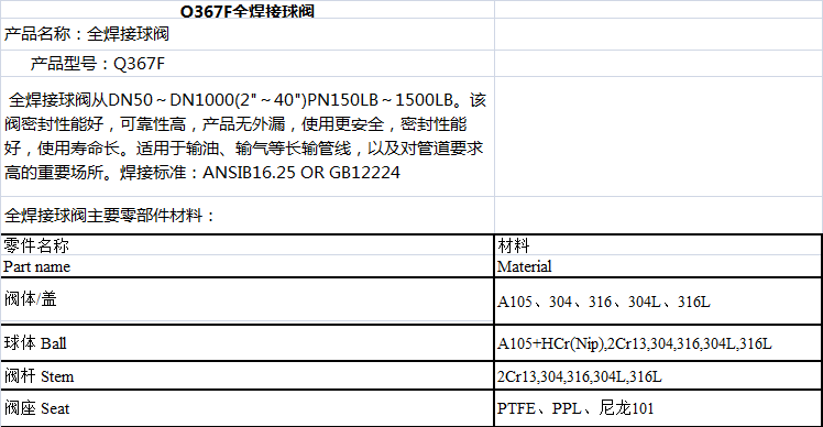 一體式全焊接球閥,不會有外部泄漏等現象,由于閥座是由碳化特氟隆密封環及咖彈簧構成的,以對壓力和溫度的變化適應能力強,標注壓力和溫度范圍內不會產生任何泄滑。球體的加工過程有先進的計算機檢測儀跟蹤檢測,以球體的加工精度高。由于閥體材料跟管道材質一樣,會出現應力不均,不會由于地震及車輛經過地面時而產生變形,管道耐老化。密封環本體采用含量20%C(碳素)的PTFE材質,保障完全無泄漏(0%)。