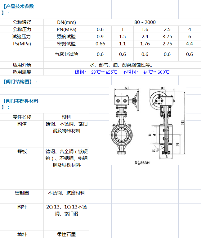 【D363H對焊式硬密封蝶閥】引進國外先進技術的基礎上,采用精密的J形彈性密封圈和三偏心多層次金屬硬密封結構,被廣泛用于介質溫度≤425℃的治金 、電力、石油化工、以及給排水和市政建設等工業管道上,作調節流量和載斷流體使用。【D363H對焊式硬密封蝶閥】采用三偏心結構,閥座與碟板密封面均采用不同硬度和不銹鋼制作,具有良好的耐腐蝕性,使用壽命長,本閥具有雙向密封功能,產品符合國家GB/T13927-92閥門壓力試驗標準。【D363H對焊式硬密封蝶閥】適用于供熱管道,輸油、輸氣管道等主要工業管道閥門,此設計使閥門為高溫、防火理想硬密封蝶閥。