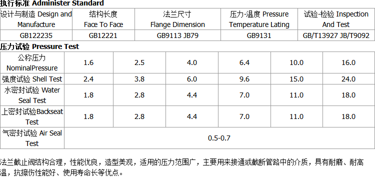 5、法蘭截止閥可采用各種配管法蘭標準及法蘭密封面型式,滿足各種工程需要及用戶要求。