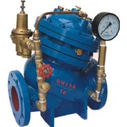 YX741X可調式減壓穩壓閥由主閥和調節閥及接管系統組成,閥體采用直流式閥體,主閥控制室為膜片式或活塞式的雙控制室結構,控制室比一般水力控制閥增加了一個,增加了對主閥的控制功能,實現了對水泵出口的緩慢開啟、全開、緩閉、截止等多功能控制,實現了一個閥門、一次調節對水泵出口的多功能控制。YX741X可調式減壓穩壓閥的接管系統采用調節閥控制,通過設定調節閥的開度,可方便實現需要的各項控制參數,如主閥的開啟速度、緩閉速度等等。